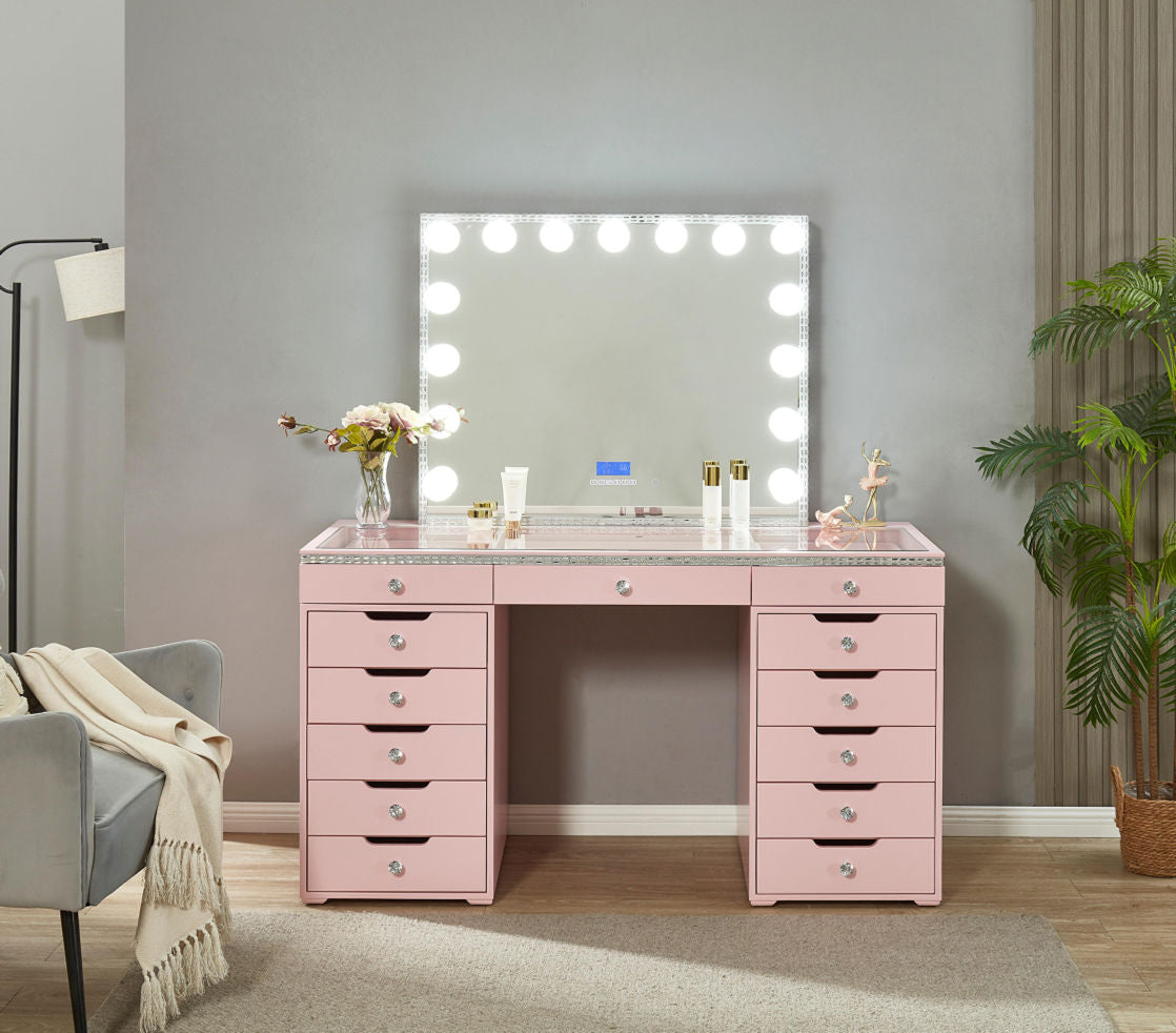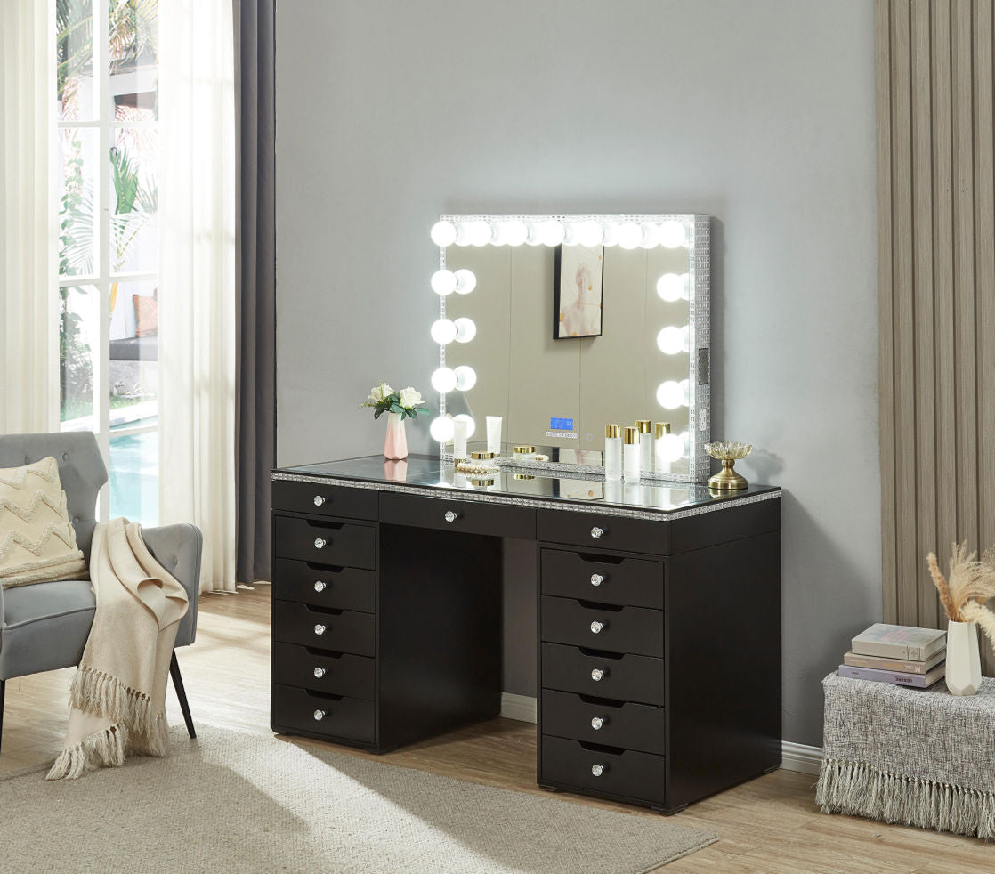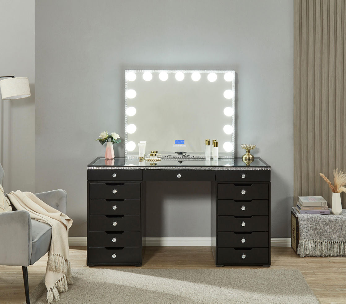 Elegant 13-Drawer Vanity Dressing Table with Crystal-Adorned Smart Makeup Mirror [LR-004-Crystal]